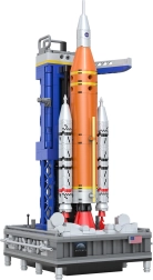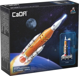 Model CaDA inspirowany programem NASA Artemis wiernie odwzorowuje pomarańczowy stopień centralny, białe pomocnicze boostery oraz wieżę serwisową z detalami konstrukcyjnymi. Nie brakuje realistycznych silników, imitacji zapłonu i oznaczeń NASA, dzięki czemu wyróżnia się na każdej półce.