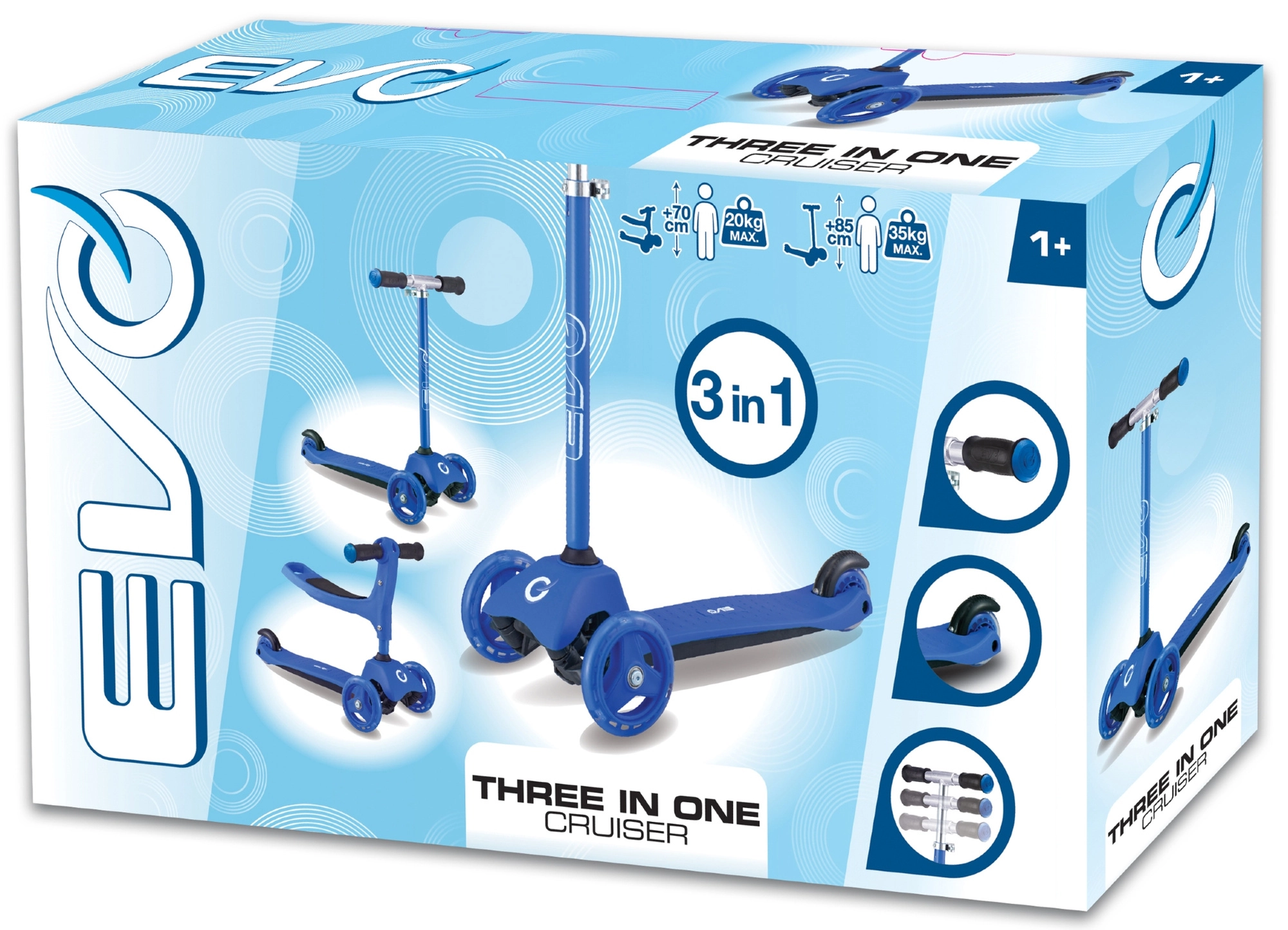 Hulajnoga EVO 2w1 rośnie z dzieckiem: zacznij w trybie jeździka z siedziskiem dla pewnego startu, a później przejdź na klasyczną trójkołową hulajnogę. Dwa duże przednie koła zapewniają znakomitą stabilność, sterowanie typu lean-to-steer wspiera naturalną naukę równowagi, a antypoślizgowy pokład dodaje pewności na każdym metrze.