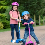 Dzięki regulowanej kierownicy (ok. 40–72 cm) łatwo dopasujesz wysokość do etapu wzrostu. Kauczukowe kółka z łożyskami ABEC‑5 to cicha i płynna jazda rekreacyjna po równych nawierzchniach, a tylny błotnik pełni funkcję hamulca dla bezpiecznego zatrzymania. Niska waga ułatwia manewrowanie i przenoszenie.