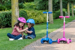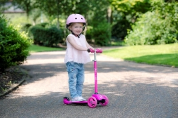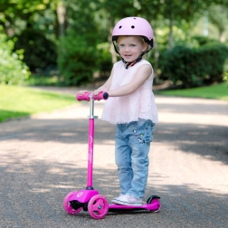Dwa duże przednie koła i mechanizm lean-to-steer zapewniają pewność w zakrętach, uczą równowagi i wspierają prawidłową koordynację ruchową.