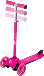 Duże przednie kółka i nisko osadzony podest zapewniają pewność i stabilność na równych nawierzchniach. Gumowe rączki wygodnie leżą w dłoni, tylny hamulec-błotnik niezawodnie zatrzymuje, a łożyska ABEC-5 dbają o cichą, płynną jazdę. Wysokość kierownicy T-bar łatwo dopasujesz do aktualnego wzrostu dziecka.
