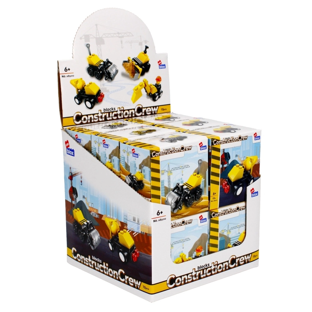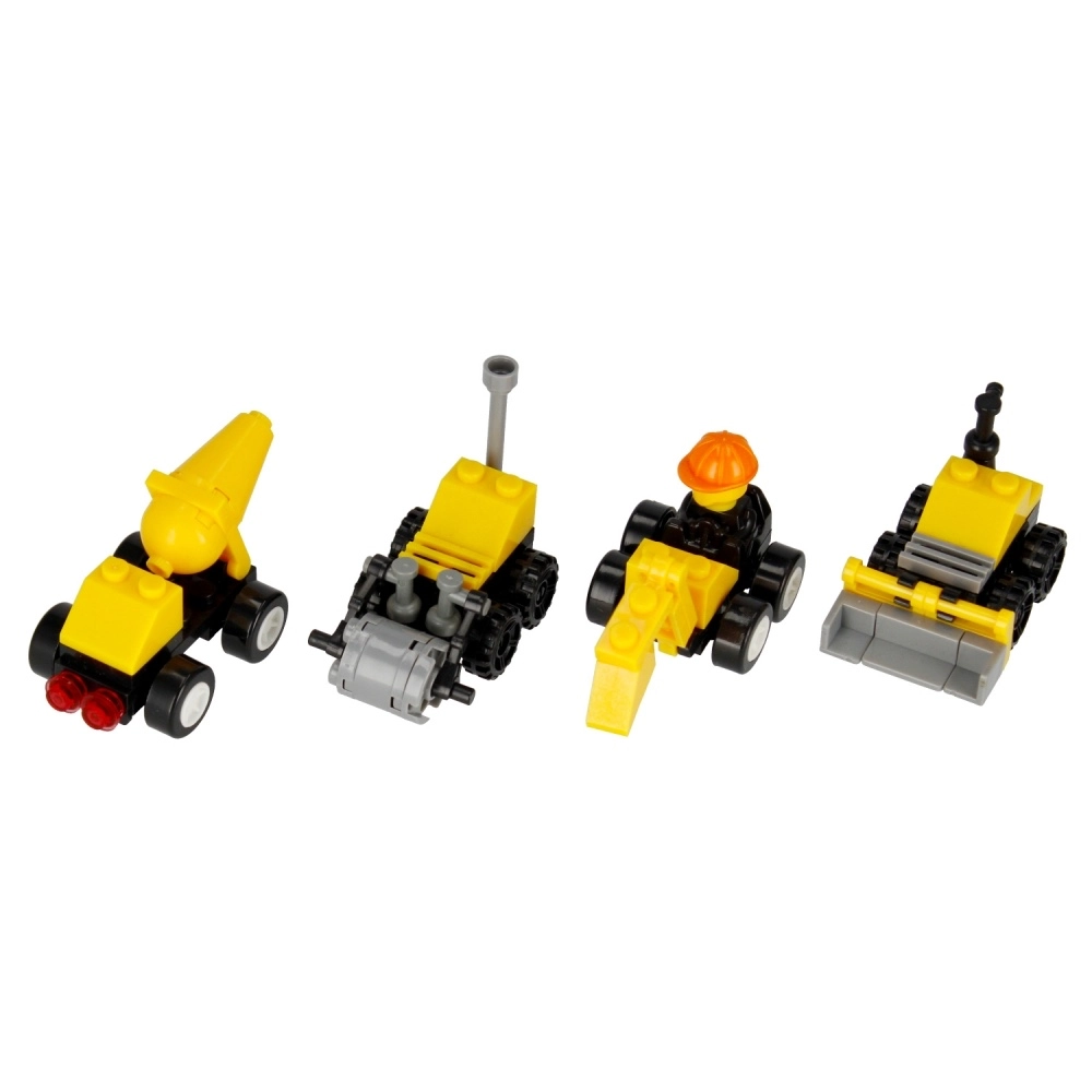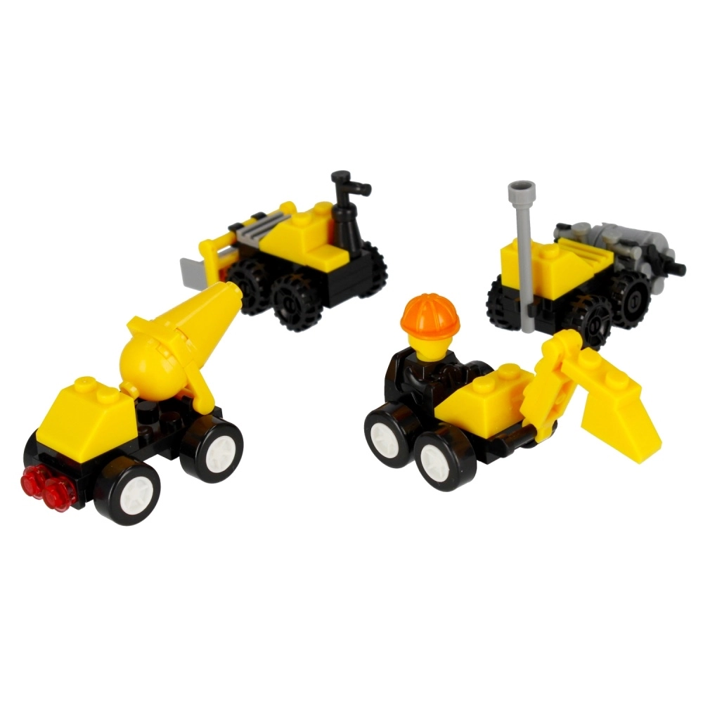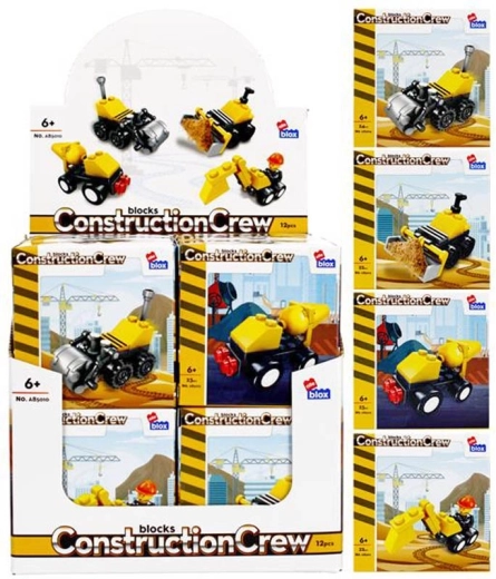 Zabawna mini zestaw konstrukcyjny dla małych budowniczych: wybierz spośród 4 różnych pojazdów budowlanych – betoniarki, spycharki, koparki i walca drogowego. Każdy model ma ruchome elementy i działające koła, zawiera 22–24 elementy oraz instrukcję montażu. Kompaktowe opakowanie idealne w podróż, świetne na prezent i do kolekcjonowania. Odpowiednie dla dzieci od 6 lat. Cena dotyczy 1 sztuki.