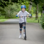 Hulajnogę złożysz w kilka chwil, postawisz na stojaku, a dzięki regulowanemu paskowi wygodnie przeniesiesz.