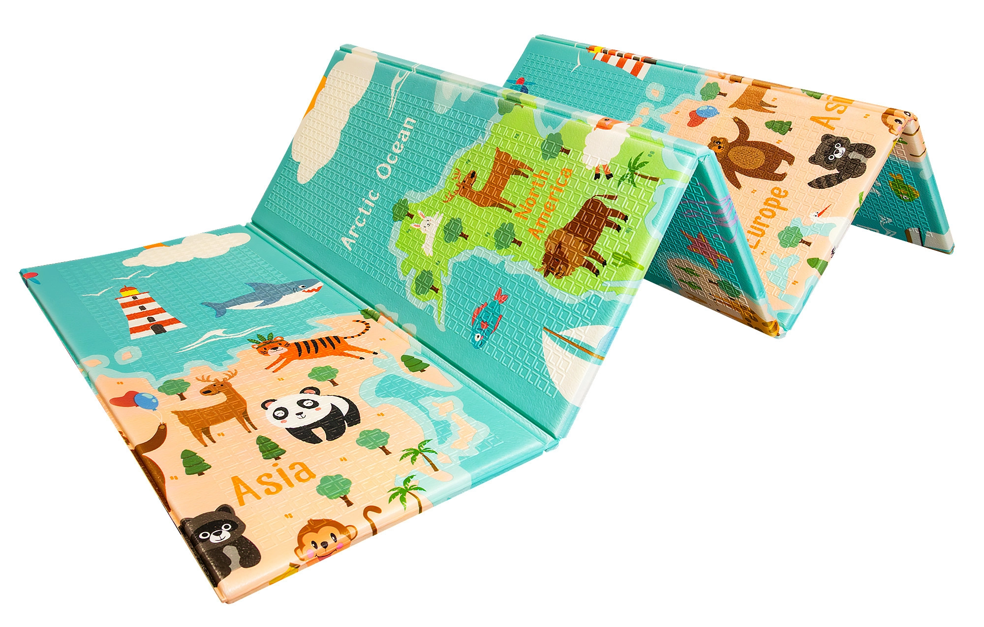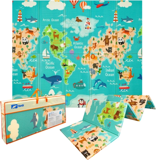 Odkryj przestronną i miękką matę do zabawy HUMBI z wysokiej jakości pianki XPE o wymiarach 200 × 180 × 1 cm. Jest dwustronna – z jednej strony kolorowa mapa świata, z drugiej miejskie uliczki – i oferuje bezpieczną, wodoodporną i łatwą w czyszczeniu powierzchnię dla niemowląt i dzieci od urodzenia. Dzięki składanej konstrukcji oraz praktycznej torbie w zestawie świetnie sprawdzi się w pokoju dziecięcym, salonie i w ogrodzie. Bez szkodliwych substancji, certyfikaty CE, EN71 i REACH dla maksymalnego spokoju rodziców.