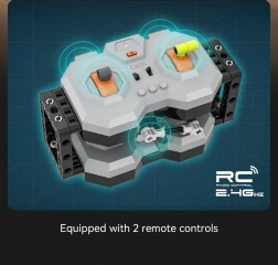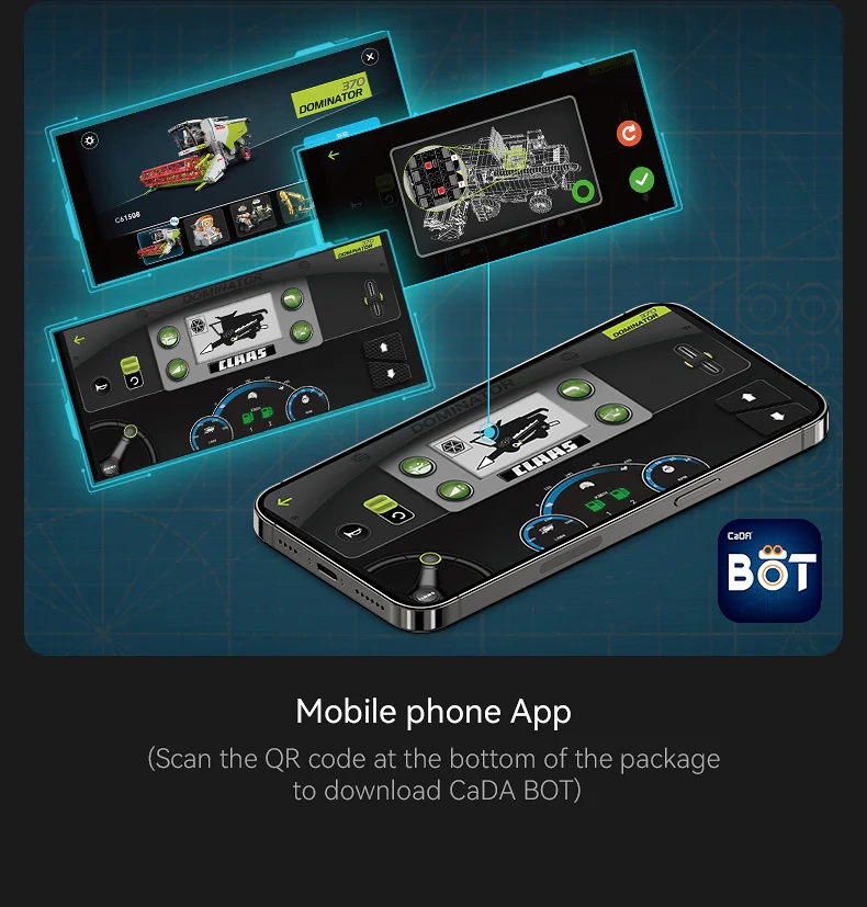 Steruj kombajnem dołączonym pilotem 2,4 GHz lub przez aplikację Bluetooth. Stabilna transmisja i zasięg ponad 25 m zapewniają płynne manewrowanie i zabawę bez przerw.