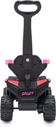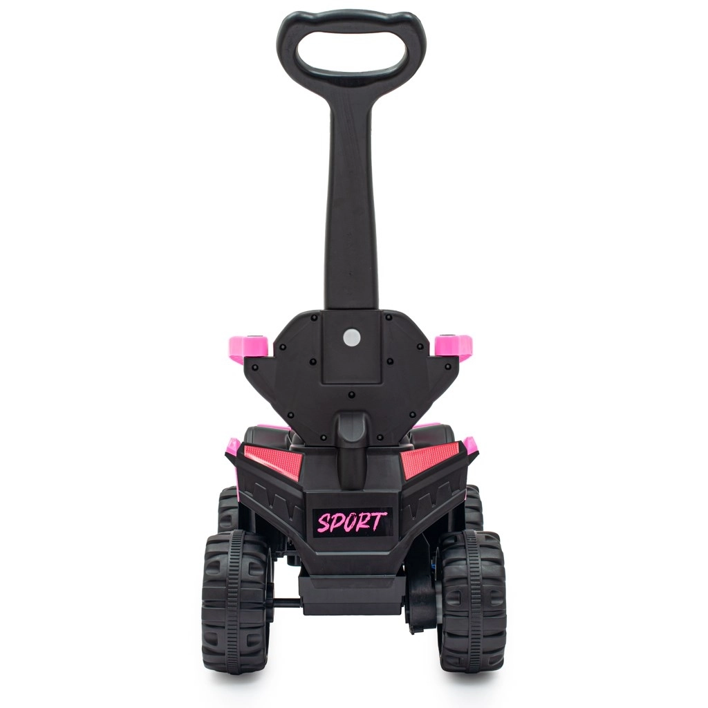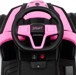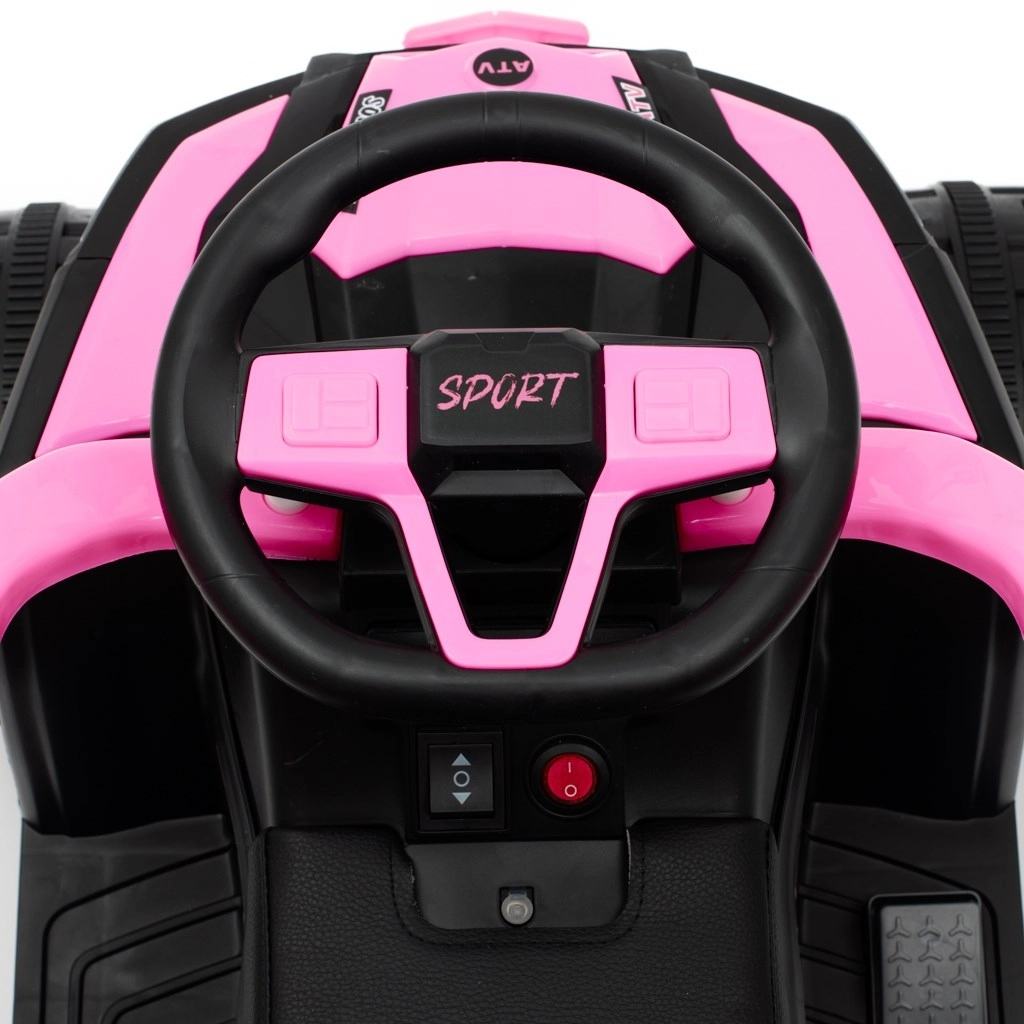 Stylowy dziecięcy elektryczny jeździk Baby Mix Ruggy w kolorze baby pink łączy napęd elektryczny 18 W, stabilny off-roadowy wygląd oraz bezpieczne prowadzenie z rączką. Ergonomiczne siedzisko z eko skóry, duże koła i wytrzymała konstrukcja zapewniają komfortową jazdę także po nierównościach, a rodzice mają kontrolę dzięki wysokiej rączce.