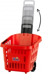 Ten czerwony wózek zakupowy dla dzieci wiernie naśladuje prawdziwy koszyk sklepowy i zachęca do kreatywnej zabawy w sprzedawcę i klienta. Konstrukcja jest lekka, a jednocześnie solidna i trwała, dzięki czemu wózek poradzi sobie z codziennymi domowymi „zakupami” i długimi godzinami zabawy.