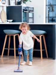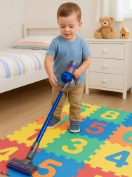 Niebiesko‑szary dziecięcy odkurzacz pionowy CASDON DYSON zapewnia dzieciom autentyczne wrażenia ze sprzątania. Posiada delikatne ssanie do lekkich okruszków i konfetti, które jest bezpieczne także dla najmłodszych użytkowników. Docenisz cichszy tryb pracy, łagodny dla słuchu dziecka, oraz realistyczne dźwięki naśladujące prawdziwy odkurzacz.
