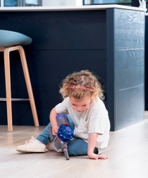 Dźwięki jak w prawdziwym odkurzaczu zachęcają do zabawy, a jednocześnie urządzenie jest wyraźnie cichsze i łagodne dla dziecięcego słuchu.
