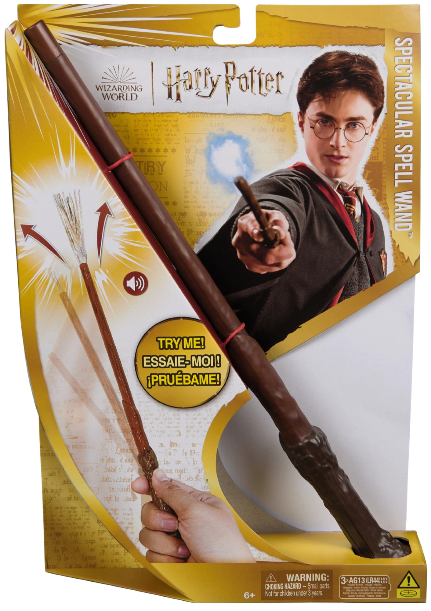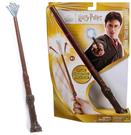 Daj się porwać magicznej atmosferze serii filmowej HARRY POTTER i wypróbuj realistyczną różdżkę Spectacular Spell. Różdżka jest aktywowana ruchem ręki, co nadaje każdemu zaklęciu właściwy efekt. Po wykonaniu czaru na końcu różdżki pojawiają się srebrne paseczki, które imitują magiczne światło, a Ty usłyszysz krótki dźwięk.