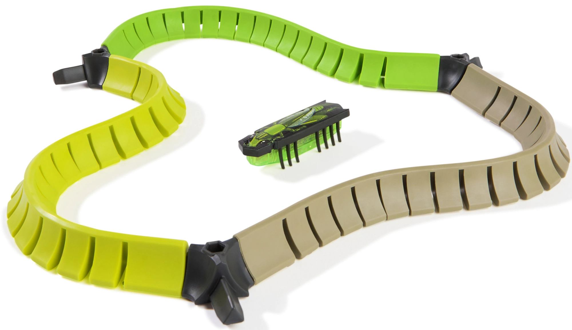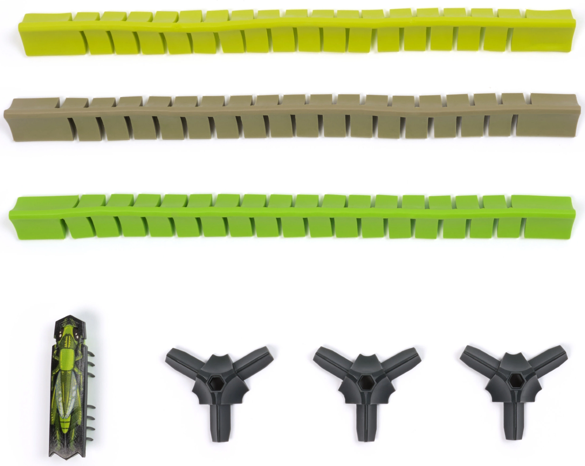 Elementy łączące umożliwiają szybkie zatrzaskiwanie i bezpieczne prowadzenie żuka po torze. Segmenty są sprężyste i giętkie, więc możesz budować owale, zakręty i labirynty. Zestaw można rozszerzać o kolejne tory i żuki HEXBUG, by uzyskać jeszcze więcej akcji.