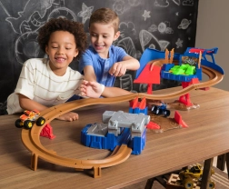 Po przejechaniu trasy pojazdy wracają na start, więc zabawa nie ustaje. Zestaw można też szybko złożyć i odłożyć.