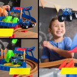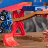 Mocny launcher wystrzeliwuje trucki do akcji, by bezpiecznie pokonywały skoki, podjazdy i ostre zakręty – idealne do wyścigów dwóch pojazdów.