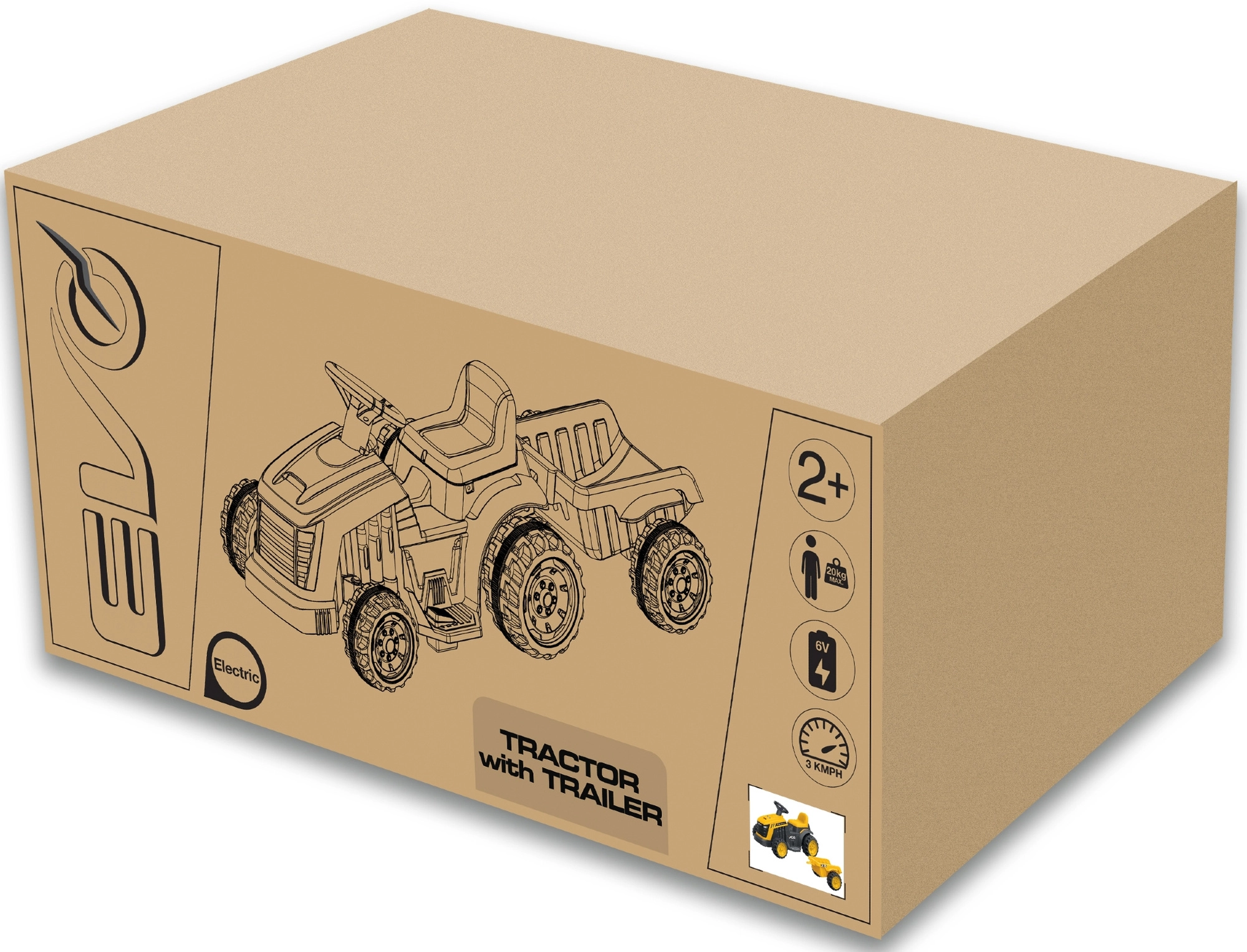 Mali farmerzy pokochają załadunek przyczepy i przewóz zabawek czy drobnych skarbów. Stabilna czterokołowa konstrukcja, antypoślizgowe podnóżki i trwałe materiały zapewniają komfortową jazdę i długą żywotność. Sterowanie jest intuicyjne – start przyciskiem, jazda do przodu, prowadzenie kierownicą.