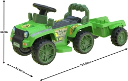 Jeździk EVO Jurassic to idealny wybór dla małych odkrywców. Solidna plastikowa konstrukcja, szerokie koła dla stabilności i łatwe sterowanie gwarantują bezpieczną i wygodną jazdę w domu i na zewnątrz. Odczepiana przyczepka umożliwia przewożenie drobnych zabawek i rozwija dziecięcą wyobraźnię.