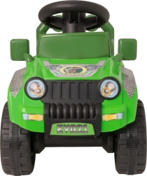 Dzięki maksymalnej prędkości ok. 3 km/h jazda jest bezpieczna nawet dla początkujących użytkowników. Jeździk pomaga wzmacniać nogi, rozwija motorykę i koordynację oraz uczy podstaw bezpiecznego poruszania się. Proste sterowanie przyciskiem startu i wygodne siedzisko z oparciem sprawiają, że codzienna jazda to czysta radość.
