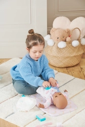 Dzieci mogą ćwiczyć przewijanie, czesanie i pielęgnację lalki z zestawem akcesoriów, które wyglądają jak prawdziwe – idealne do rozwijania empatii i zabaw w odgrywanie ról.