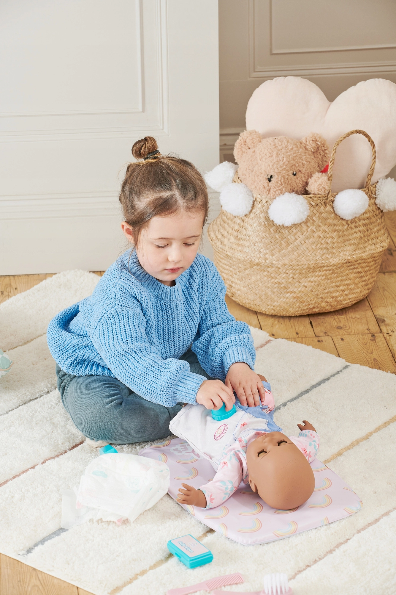 Mata, pieluszka i akcesoria pielęgnacyjne są kompaktowe i przejrzyście uporządkowane – idealne do domu i w podróży. Odpowiednie dla lalek do 46 cm.