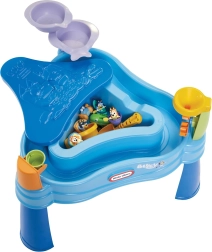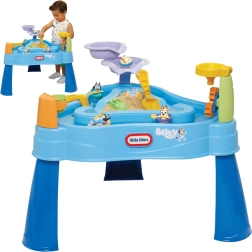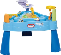 Stół LITTLE TIKES BLUEY przynosi bogato wyposażony wodno-piaskowy plac zabaw prosto na Twój ogród, taras lub balkon. Zewnętrzny pierścień tworzy zabawną „leniwią rzekę” do nalewania, czerpania i pluskania, podczas gdy wewnętrzna trójkątna komora idealnie nadaje się na piasek lub dodatkową wodę. Dwa kaskadowe baseniki, przelewające się wiaderko oraz lejek z obracającymi się kołami rozwijają zmysły i naturalną ciekawość dzieci.