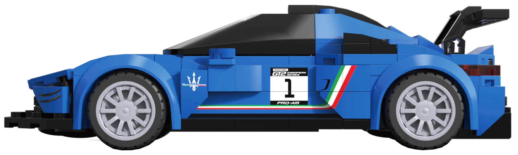 Wiernie oddane linie nadwozia, tylne skrzydło wyścigowe oraz nadruki z numerem auta podkreślają realistyczny wygląd modelu MASERATI MC20 GT2.