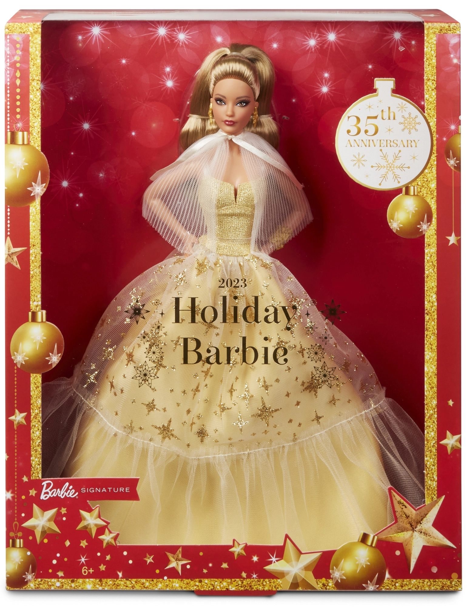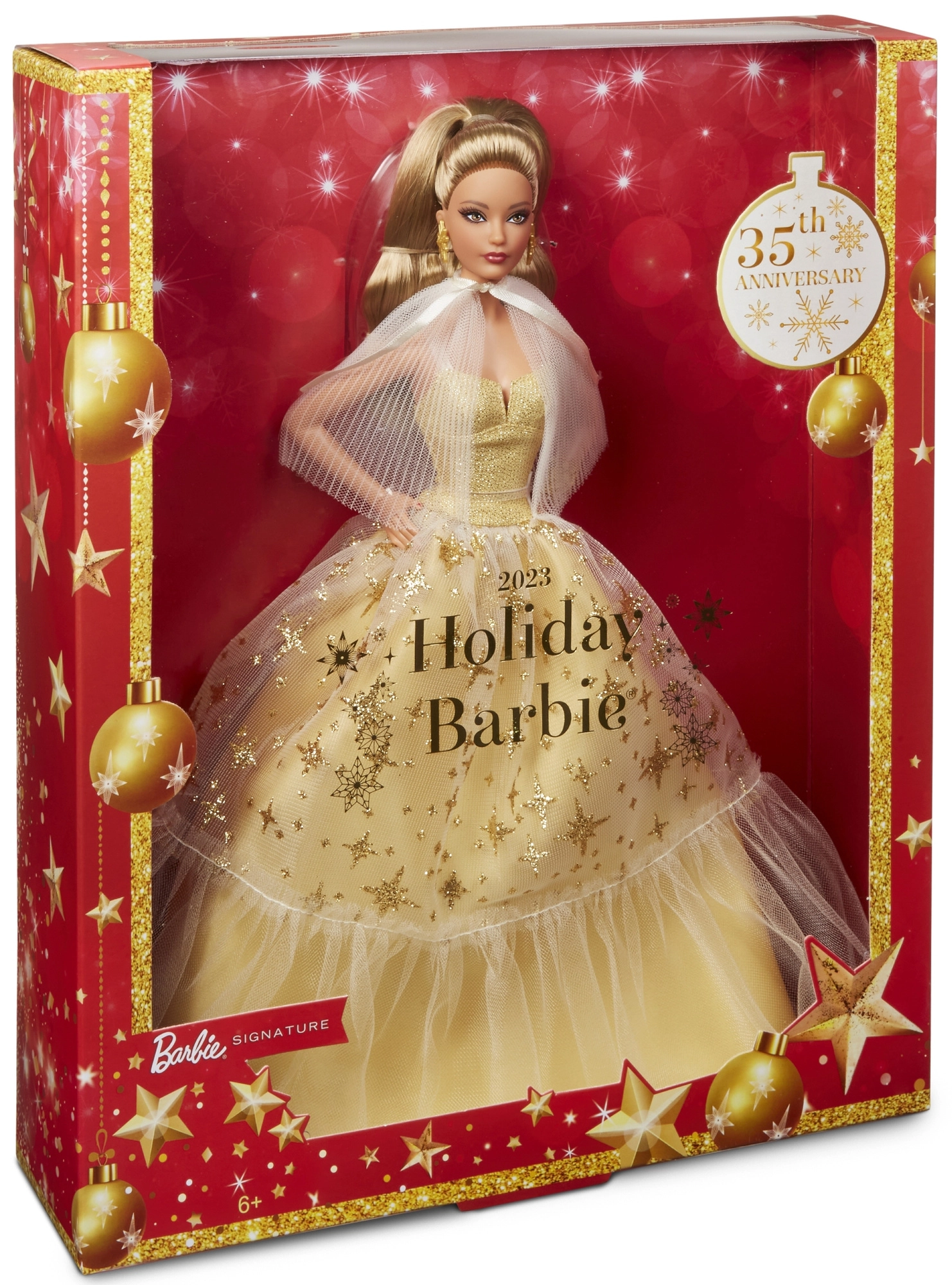 Ta wyjątkowa edycja kolekcjonerska świętuje 35 lat kultowej serii Barbie. Lalka zachwyca wyrafinowanym wyglądem: nieco ciemniejszy blond, jasnobrązowe oczy i wyraz twarzy podkreślają jej dojrzały charakter. Eleganckie złote kolczyki oraz czerwone paznokcie dopełniają odświętny styl.