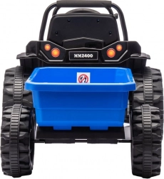 Dziecięcy elektryczny traktor z przyczepą MILLY MALLY FARMER w niebieskim kolorze oferuje bezpieczną i zabawną jazdę dla małych kierowców od 3 lat. Dzięki dwóm silnikom 2 × 35 W i akumulatorowi 12 V/7 Ah osiąga prędkość 3–5 km/h, ma łagodny start, światła LED, terenowe koła oraz bogaty panel audio z USB i Bluetooth. Wytrzymała konstrukcja, metalowe pałąki bezpieczeństwa i odłączana przyczepa wspierają kreatywną zabawę i rozwój motoryki.