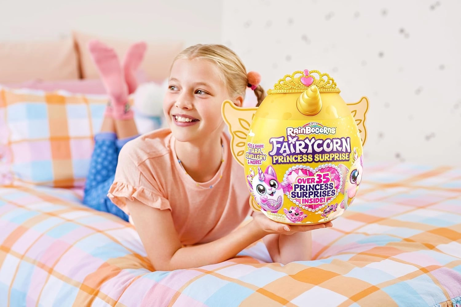 - Jajko z pluszowym Fairycornem, tiara, magiczna różdżka, nakładane skrzydła, Boo‑Boocorn, 35+ drobnych niespodzianek i akcesoriów