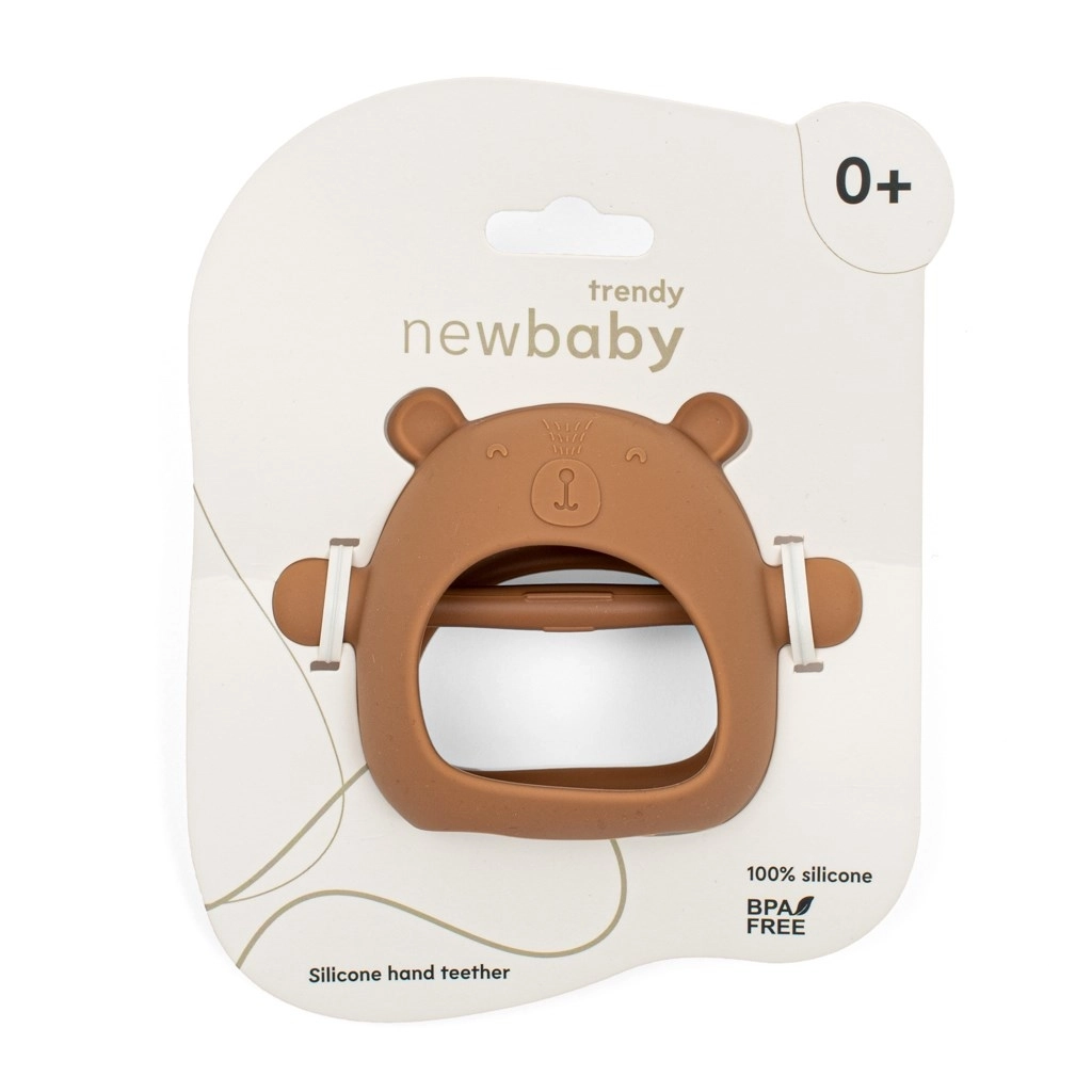 Stylowy silikonowy gryzak z kolekcji New Baby Trendy łączy bezpieczeństwo, funkcjonalność i elegancki design. Delikatny karmelowy brąz oraz kształt misia świetnie pasują do małych dziecięcych rączek. Idealny pomocnik podczas wyrzynania ząbków, bez BPA, w luksusowym opakowaniu prezentowym.