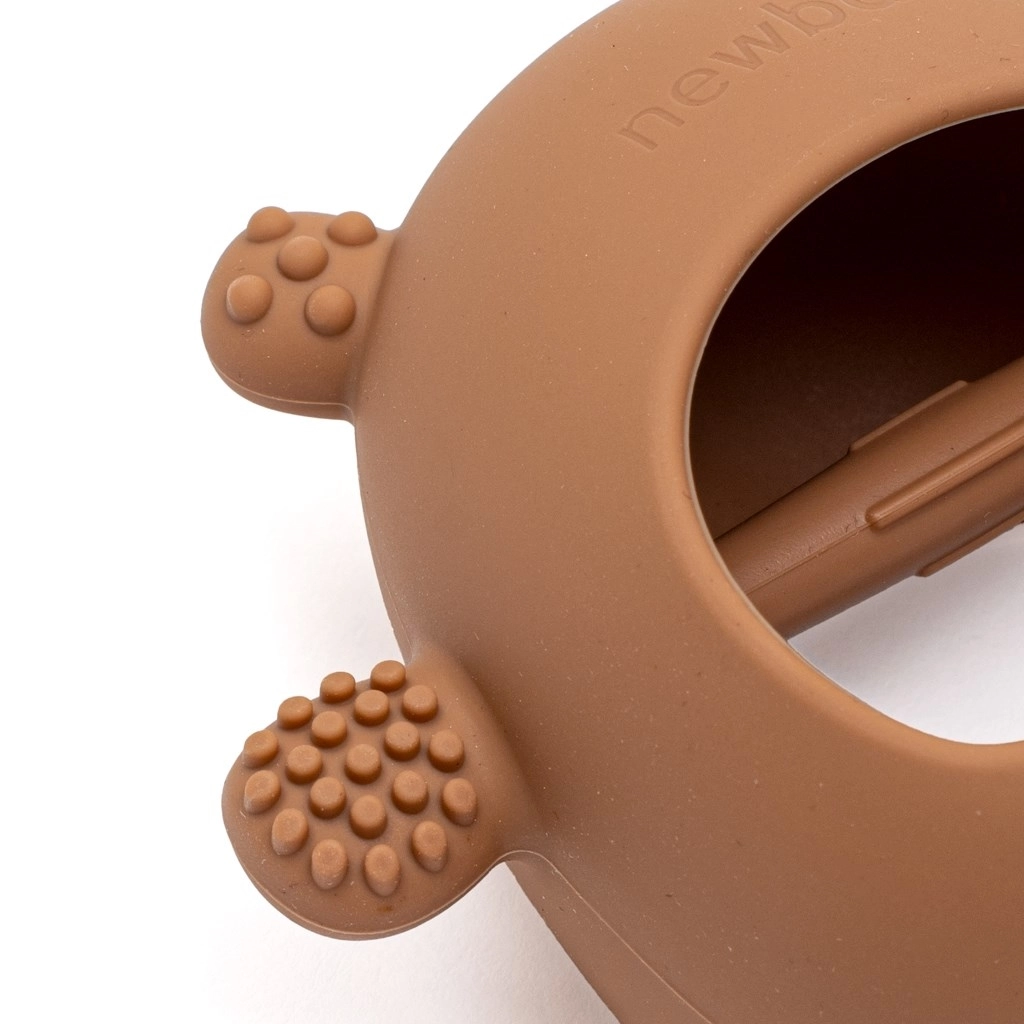 Gryzak New Baby Trendy został zaprojektowany z myślą o wygodnym chwytaniu i delikatnym masażu dziąseł. Minimalistyczny wygląd w karmelowym brązowym odcieniu pasuje do każdego stroju i wózka, dzięki czemu jest jednocześnie praktyczny i stylowy.