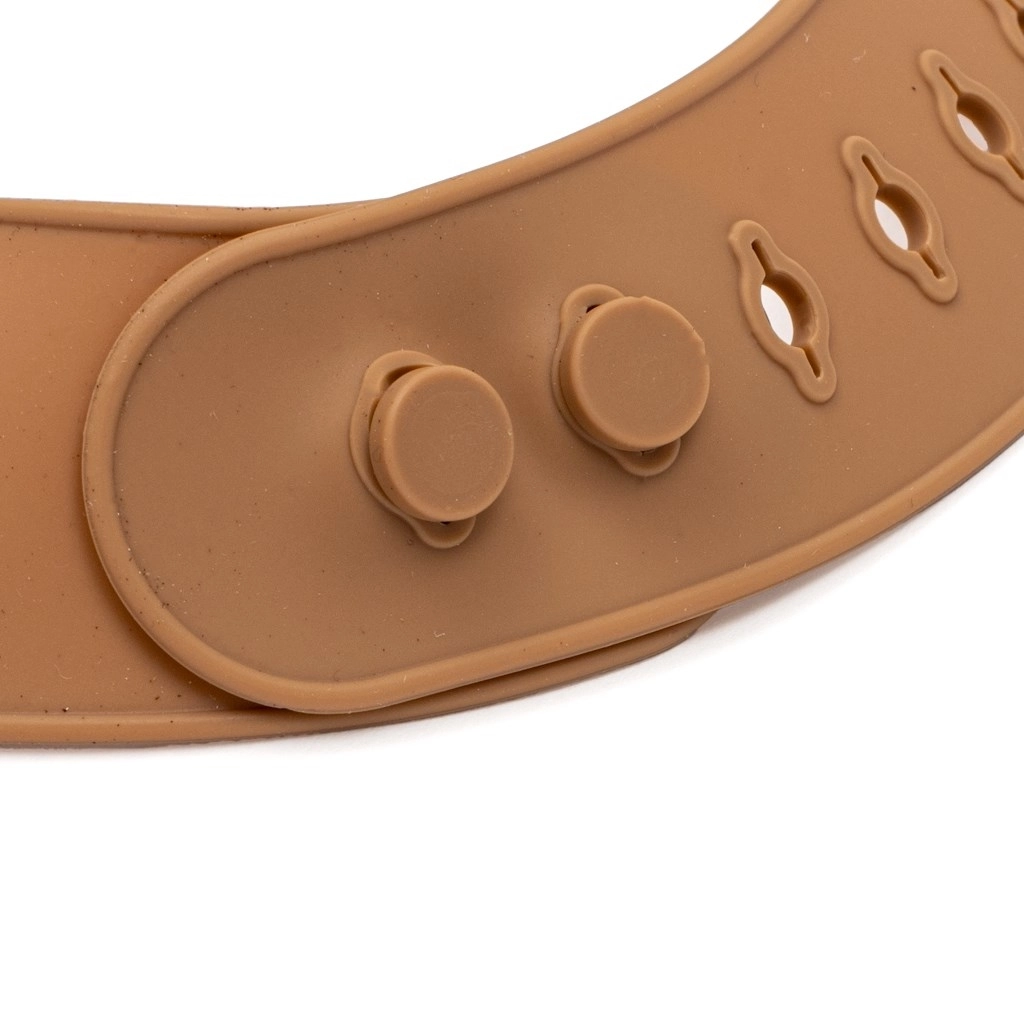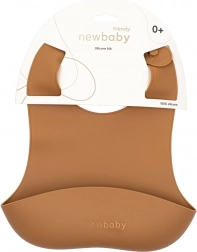 Praktyczny silikonowy śliniak NEW BABY w brązowym kolorze chroni ubranie podczas karmienia dzięki głębokiej kieszeni na okruchy i płyny. Wykonany z miękkiego, bezpiecznego silikonu, ma regulowane zapięcie dla wygodnego noszenia, łatwo się czyści i jest trwały oraz elastyczny do codziennego użytku.