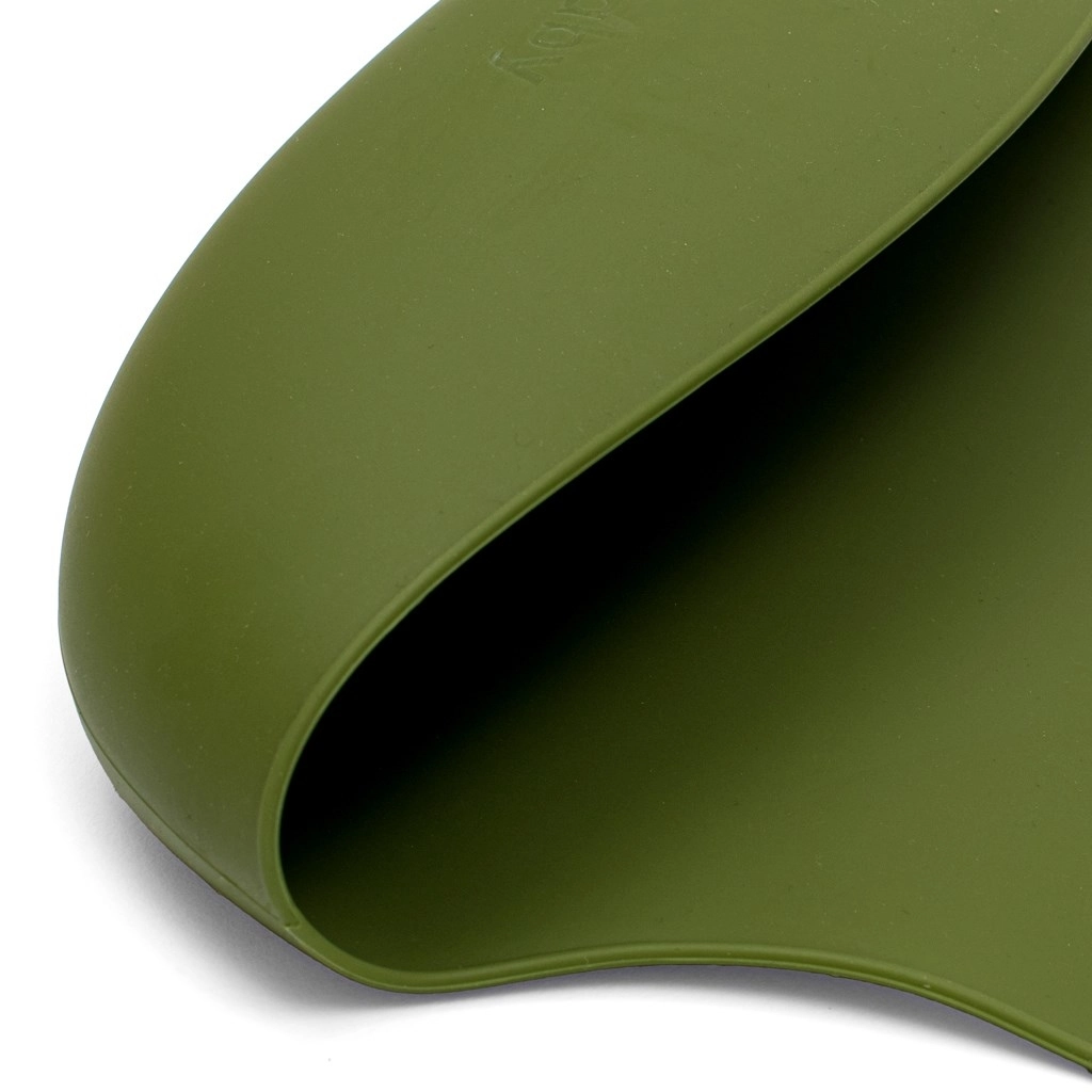 Przemyślany design z subtelnym grawerem uzupełnia głęboka kieszeń, która niezawodnie zbiera okruchy i płyny. Materiał jest wytrzymały, nie pochłania zapachów, a śliniak wystarczy po prostu przetrzeć lub opłukać.