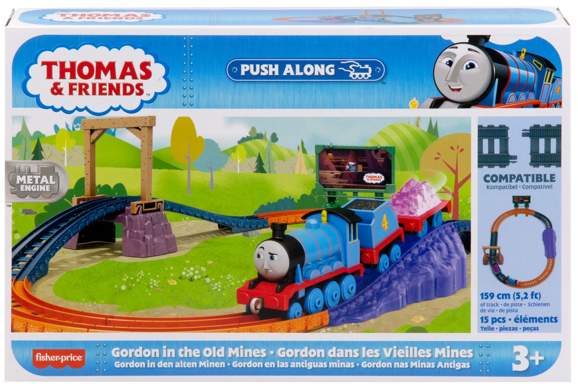 Ten zabawny zestaw kolejowy przenosi akcję ze starej kopalni prosto do dziecięcego pokoju. Dzieci mogą ładować fioletowe kryształy do wózka, przejeżdżać przez most i rampy i cieszyć się płynną jazdą po owalnym torze. Lokomotywa Gabryś ma praktyczne plastikowe łączniki ułatwiające podłączanie kolejnych wagonów i lokomotyw.