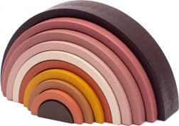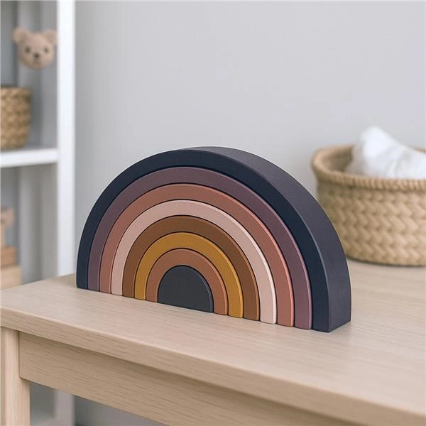 Drewniana tęcza Brown Montessori Baby Mix to ponadczasowa zabawka do sensownej zabawy i nauki. Dzieci mogą układać łuki, warstwować je i łączyć w różne konstrukcje, dzięki czemu naturalnie rozwijają percepcję przestrzenną, cierpliwość i logiczne myślenie. Neutralne, ziemiste kolory współgrają z nowoczesnym wystrojem pokoju dziecięcego.