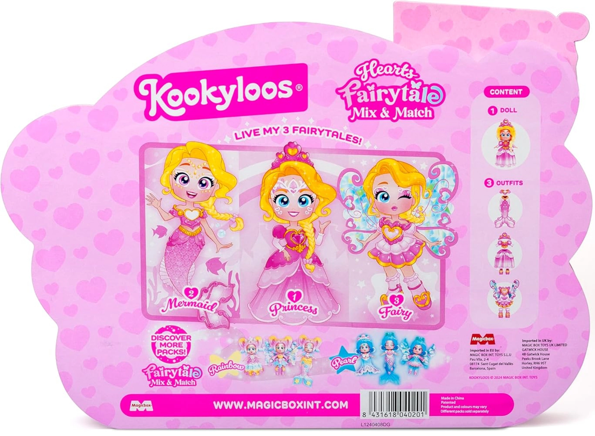 KookyLoos Fairytale Hearts przenosi wyobraźnię w zasięg ręki: w kilka chwil z eleganckiej księżniczki staje się czarująca wróżka lub szybka syrena. Figurka ma ruchome ręce i specjalny klik-mechanizm, który przełącza 3 miny twarzy – uśmiech, zamyślone spojrzenie i zaskoczenie.