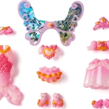 W zestawie znajdują się sukienka księżniczki, skrzydła i spódniczka wróżki oraz błyszczący ogon syreny. Łatwo je wymienisz i stworzysz nowe role.