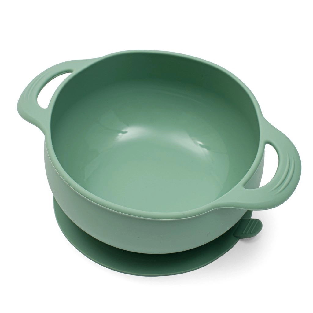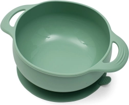 Głęboka silikonowa miska ze stabilną przyssawką i bocznymi uszkami ułatwia nabieranie i zapobiega przewracaniu. Świetna na pierwsze posiłki.
