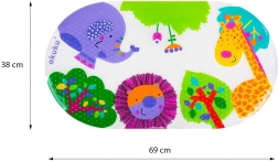 Zalecenia dotyczące użytkowania: Napełnij wannę wodą, włóż matę i równomiernie ją dociśnij. Po każdej kąpieli umyj delikatnym mydłem dla dzieci, spłucz i pozostaw do wyschnięcia. Dziecko zawsze powinno być pod nadzorem osoby dorosłej.