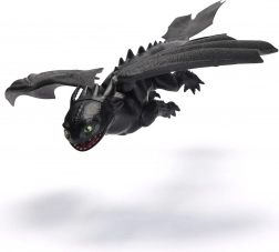 Odkryj ikonicznego smoka TOOTHLESS z uwielbianej serii Jak wytresować smoka. Figurka w czarnym wydaniu wyróżnia się szczegółową fakturą łusek, wyrazistymi zielonymi oczami i szerokimi skrzydłami. Doskonała do kreatywnej zabawy, opowiadania historii oraz jako kolekcjonerski eksponat.
