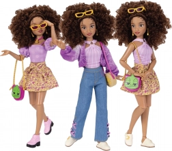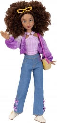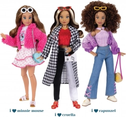 Lalka ma kręcone brązowe włosy idealne do czesania i stylizacji. W komplecie znajdziesz 2 pełne looki obejmujące topy, bluzę/sweter, dżinsy, spódnicę, dwie pary butów, torebki i biżuterię. Dbałość o detale z motywami z bajki Zaplątani oraz ikonicznymi elementami MICKEY dodaje zestawowi oryginalnego charakteru.