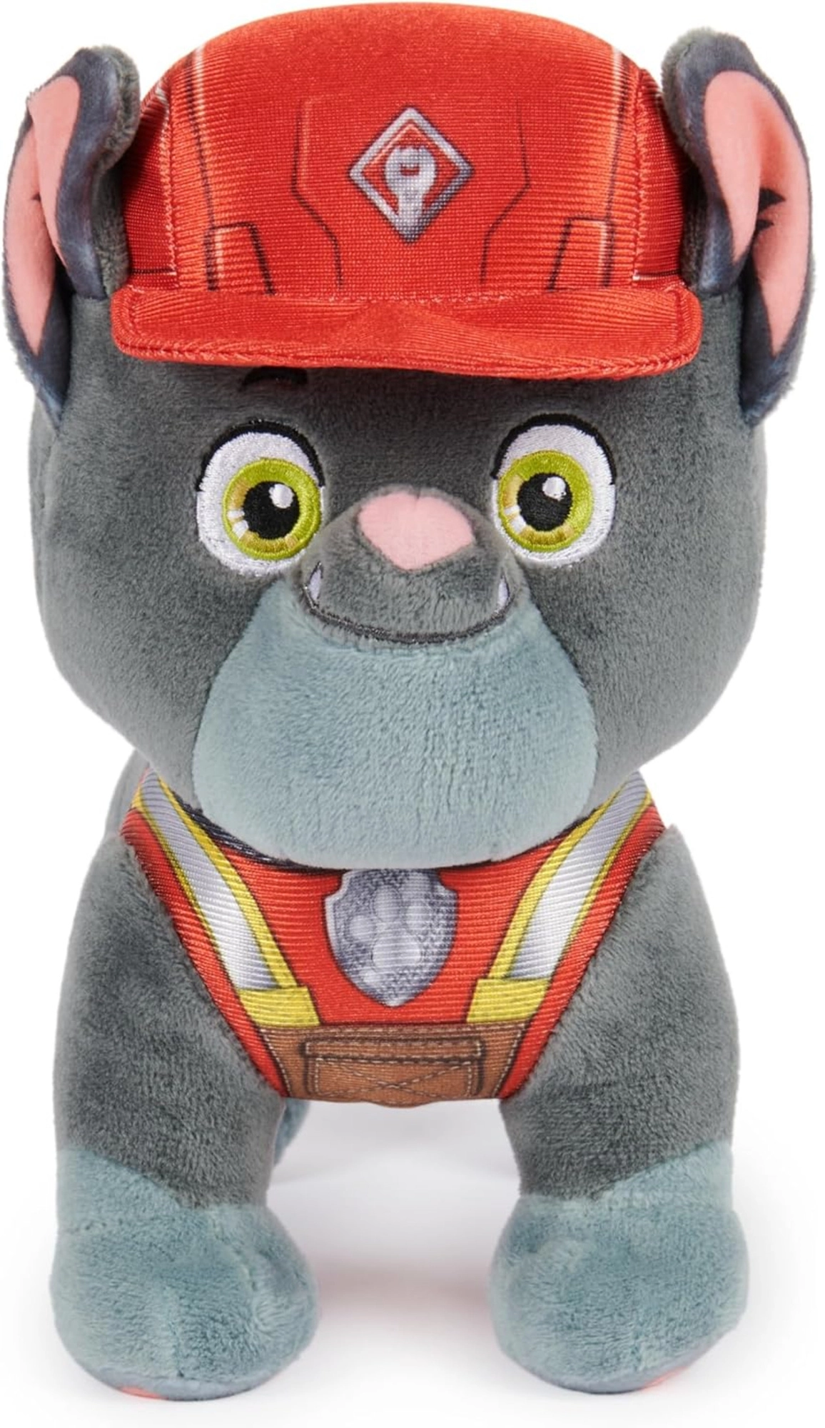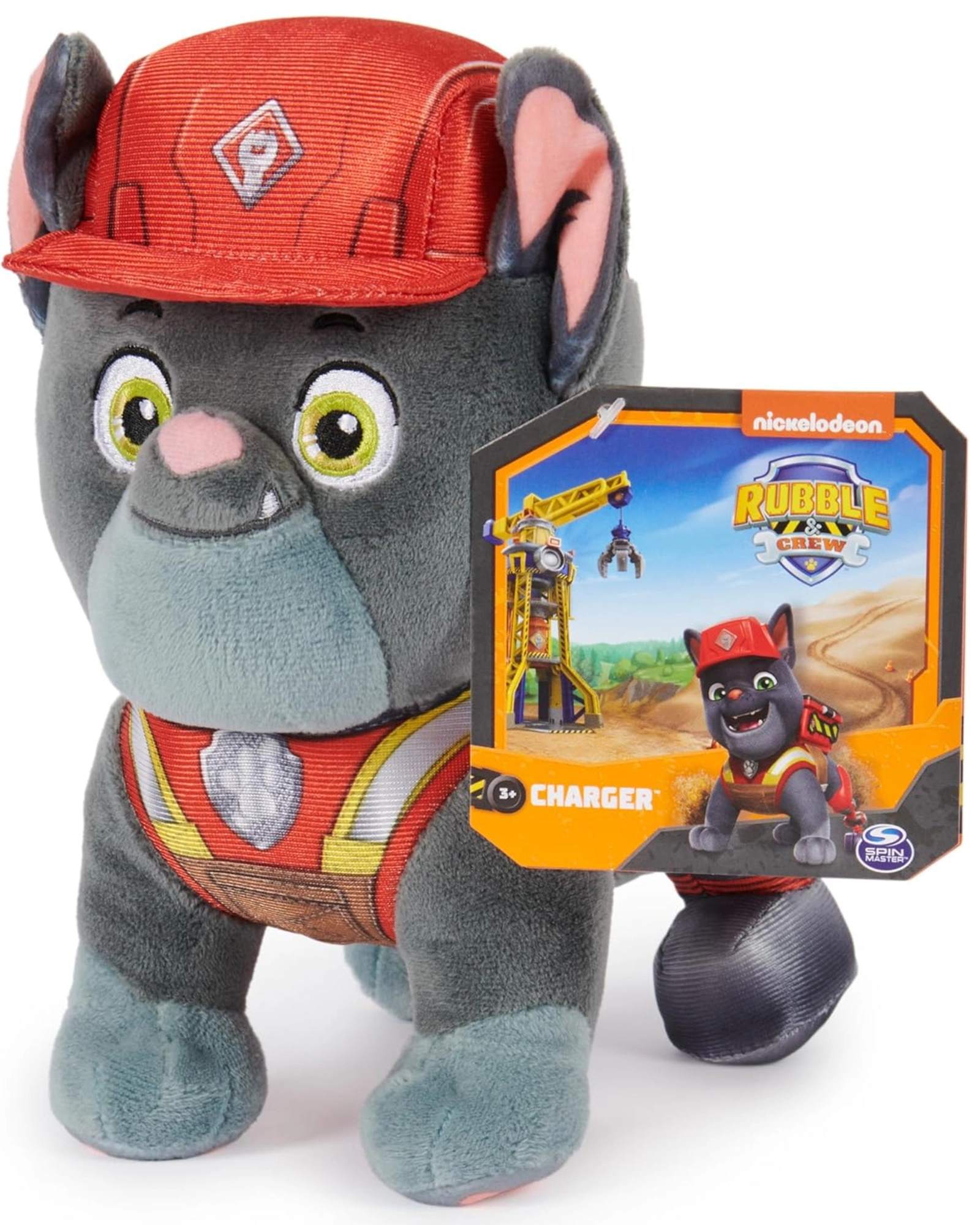 Pluszak Charger to energiczny francuski buldog z serii PSI Patrol: Rubble & Crew, gdzie pomaga w transporcie ciężkich ładunków. Ta starannie wykonana zabawka od firmy Spin Master wiernie oddaje jego wygląd – od czerwonego kasku i kamizelki z odblaskowymi elementami po delikatne szaro-srebrne futerko i duże haftowane oczy.