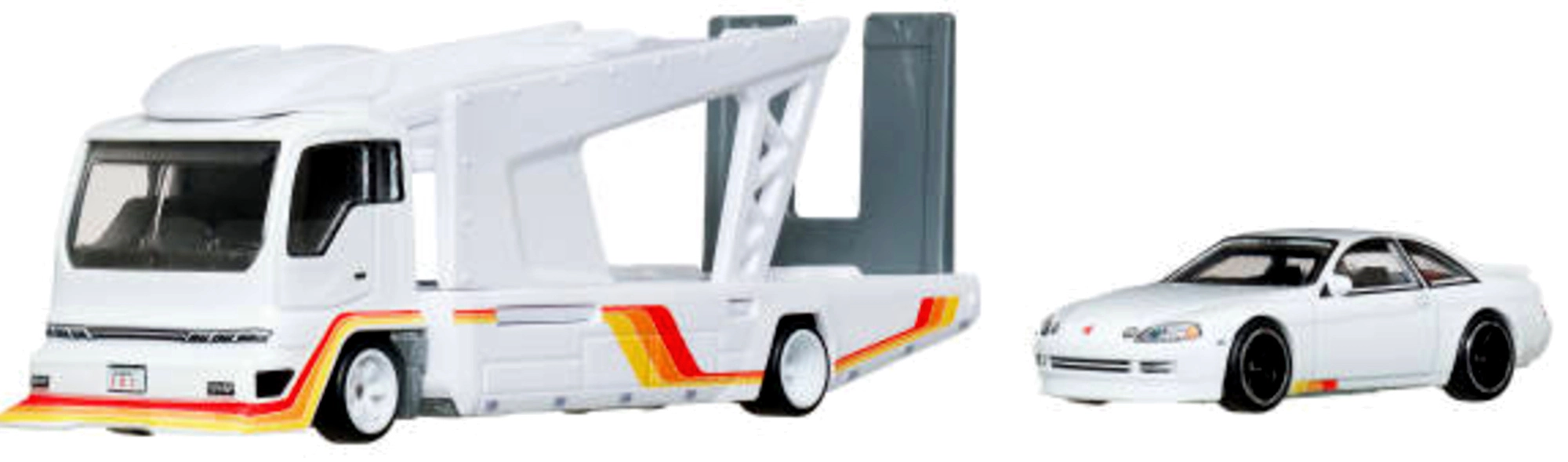 Odkryj zestaw premium HOT WHEELS z kolekcji Premium Team Transport, który łączy elegancję i sportowego ducha. Model Toyota Soarer w białym kolorze oraz stylowy transporter Kousoku Hauler #79 tworzą perfekcyjny duet do gabloty i kreatywnej zabawy.