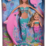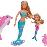 - 1x lalka Steffi (syrenka), 1x lalka Evi (syrenka), 1x różowy delfin, 1x grzebień w kształcie konika morskiego