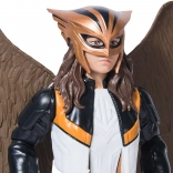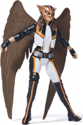 Figurka HAWKGIRL w czarno‑białym stroju ze złotymi akcentami wiernie oddaje komiksowe i animowane oblicze wojowniczki z Thanagaru. Dzięki artykulowanym rękom, nogom i głowie łatwo ustawisz pozę do walki i lotu z oddzielnymi brązowymi skrzydłami.