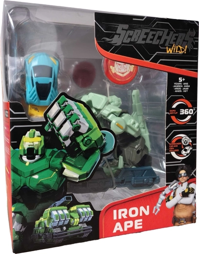 Rusz do akcji z zestawem Screechers Wild! – transformującą figurką IRON APE, która w mgnieniu oka zmienia się z małpy w szybkie zielone auto. Dzięki ruchomym elementom, wyrazistemu designowi i dołączonej energetycznej monecie dzieci od 5 lat czeka mnóstwo dynamicznych pojedynków i zabawy.