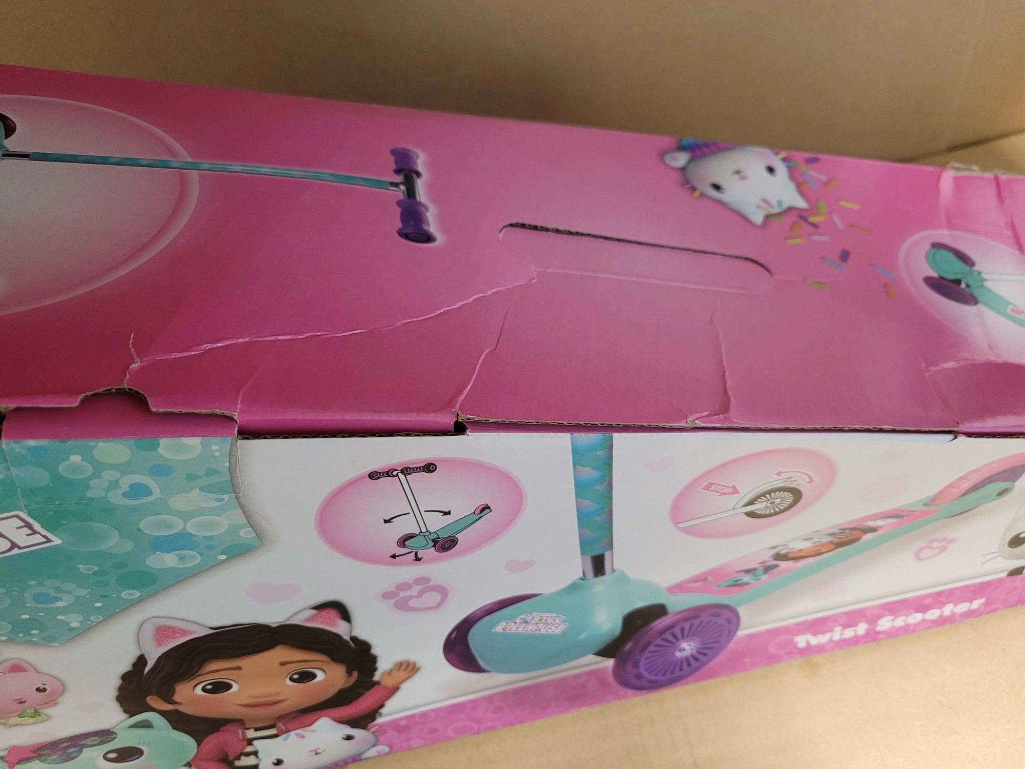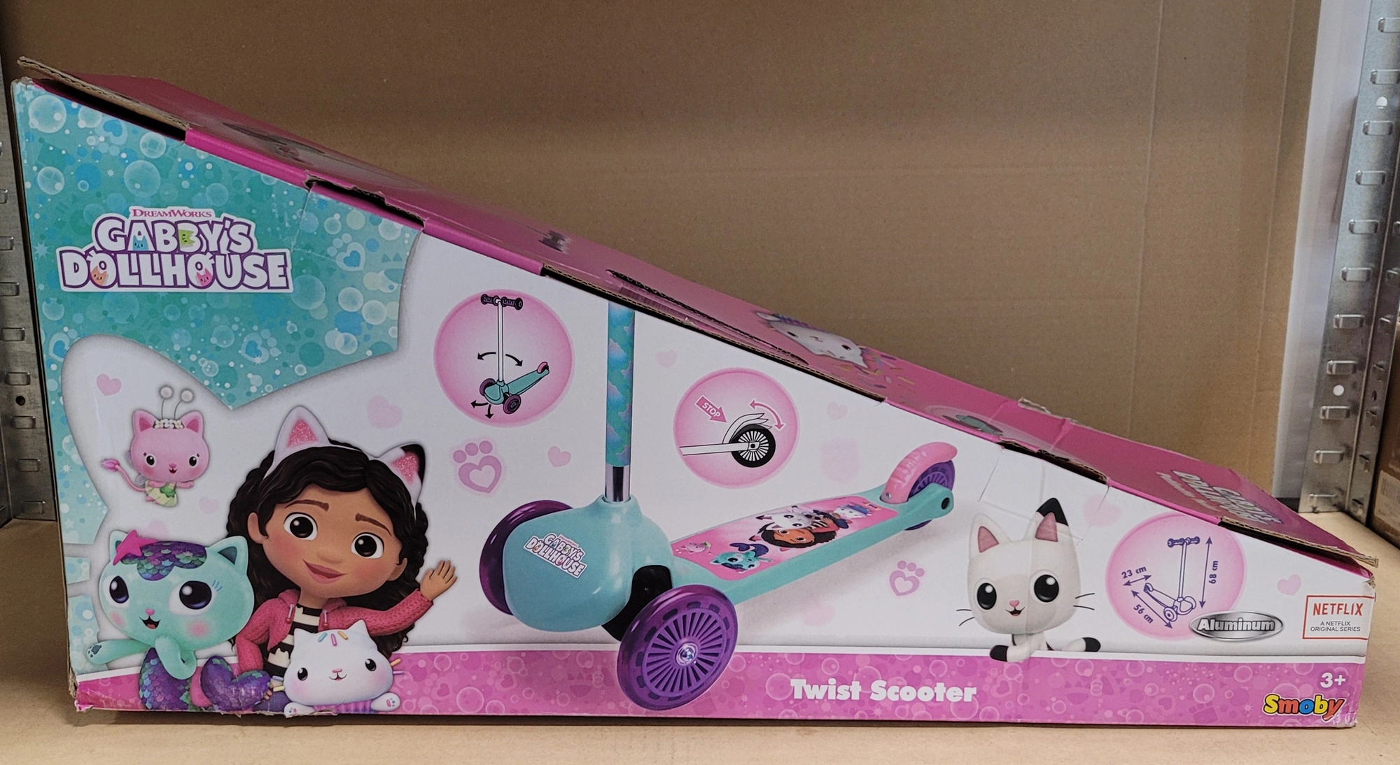 Lekka i stabilna dziecięca hulajnoga z motywem GABBY’S DOLLHOUSE dla dzieci od 3 lat. Oferuje trzy koła dla pewności i równowagi, skręcanie balansowe dla łatwego prowadzenia, ciche kółka oraz tylny hamulec nożny dla bezpiecznego zatrzymywania. Idealna na pierwsze jazdy i rozwój motoryki. Uwaga: uszkodzone opakowanie, produkt jest w pełni sprawny.