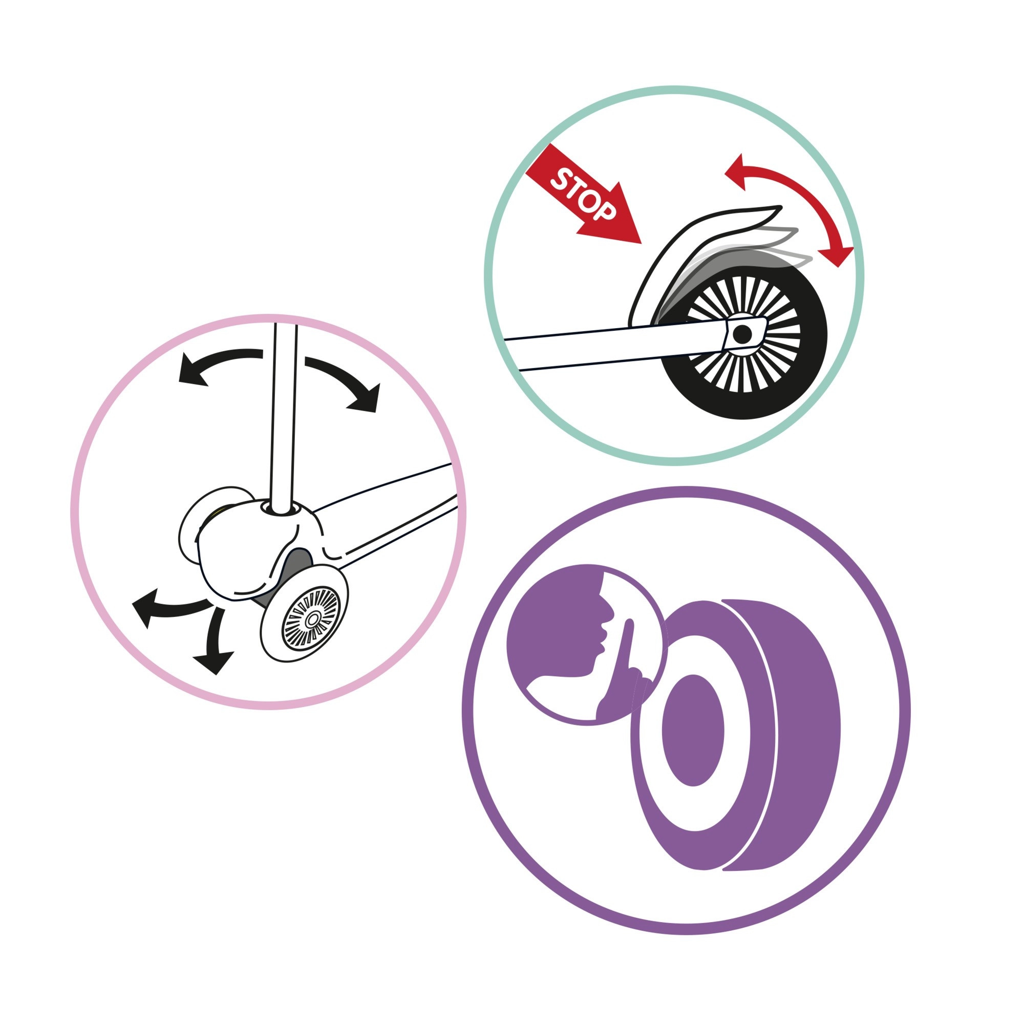 Hulajnoga wspiera rozwój równowagi i koordynacji dzięki kierowaniu balansowemu (przechylaniu). Ciche kółka gwarantują komfortową jazdę zarówno na chodniku, jak i na placu zabaw. Wysoka jakość wykonania i trwałe materiały zapewniają długą żywotność nawet przy częstym użytkowaniu.