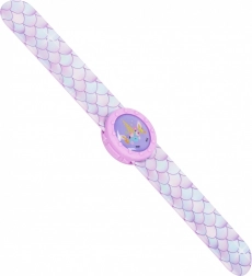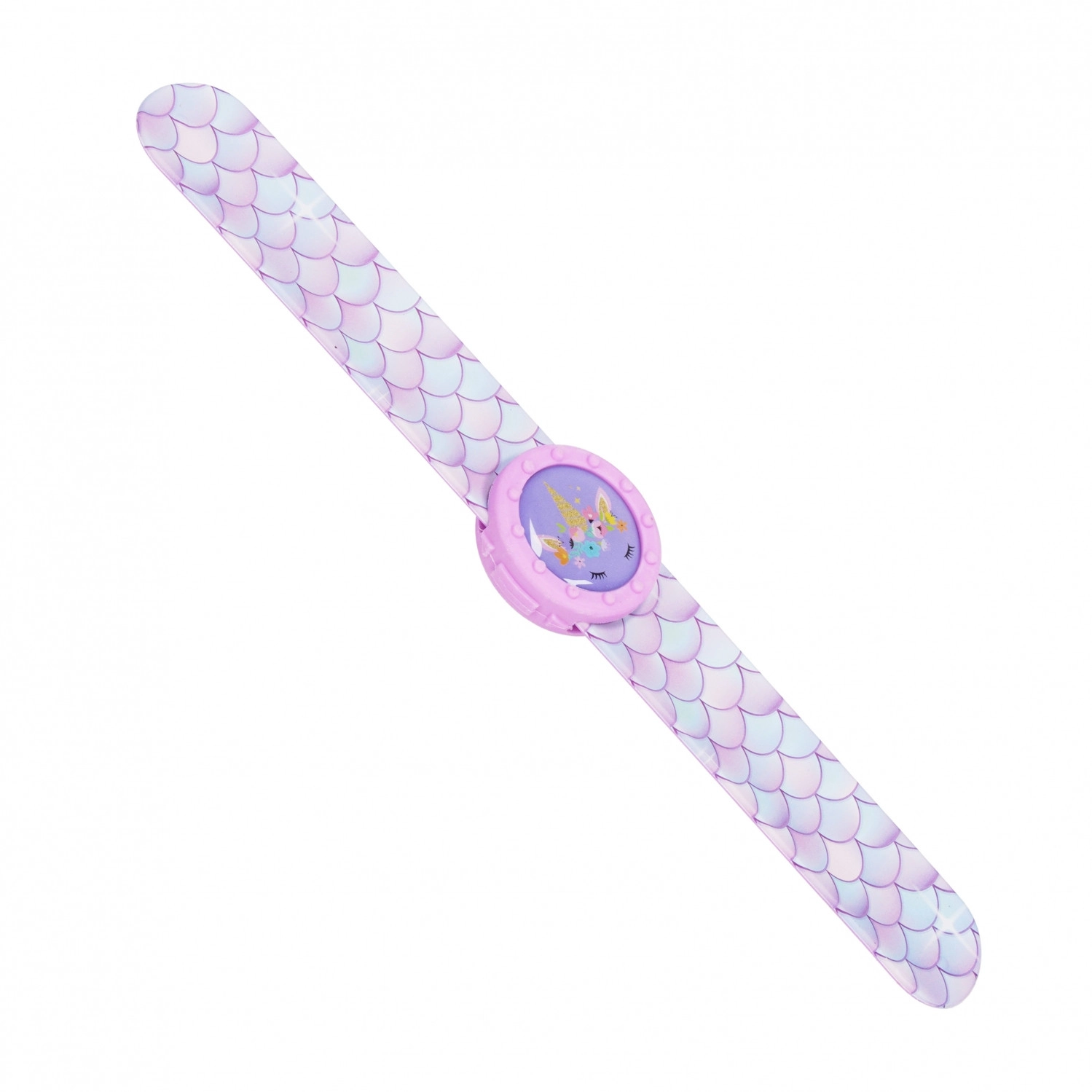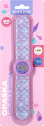 Różowy zegarek-linijka łączy zabawę i funkcjonalność w jednym akcesorium. Dzięki elastycznemu silikonowemu materiałowi jest trwały, przyjemny w dotyku i bezpieczny dla dzieci. Projekt z gumową „tarczą” sprawia, że bransoletka to figlarny modny dodatek, który dzieci mają zawsze pod ręką – a wraz z nim swoją linijkę o długości 21,5 cm.