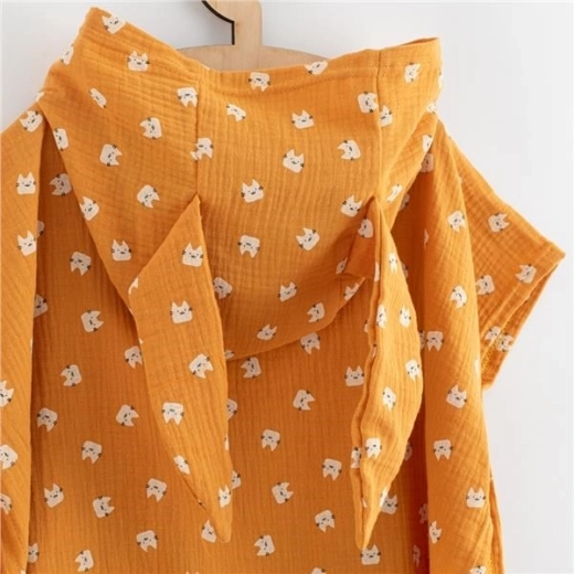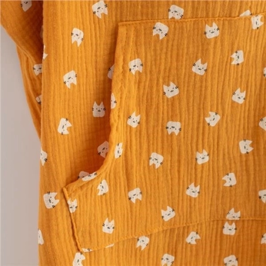 Odkryj praktyczne i stylowe ponczo z podwójnej gazy (muślinu), które dzieci uwielbiają. Jest lekkie, przewiewne i szybko schnie, więc sprawdzi się po kąpieli, przy basenie i na plaży. Dzięki luźnemu krojowi ponczo dłużej rośnie z dzieckiem i świetnie pasuje do różnych sylwetek.