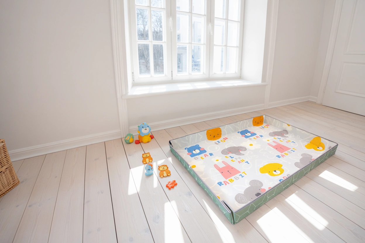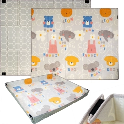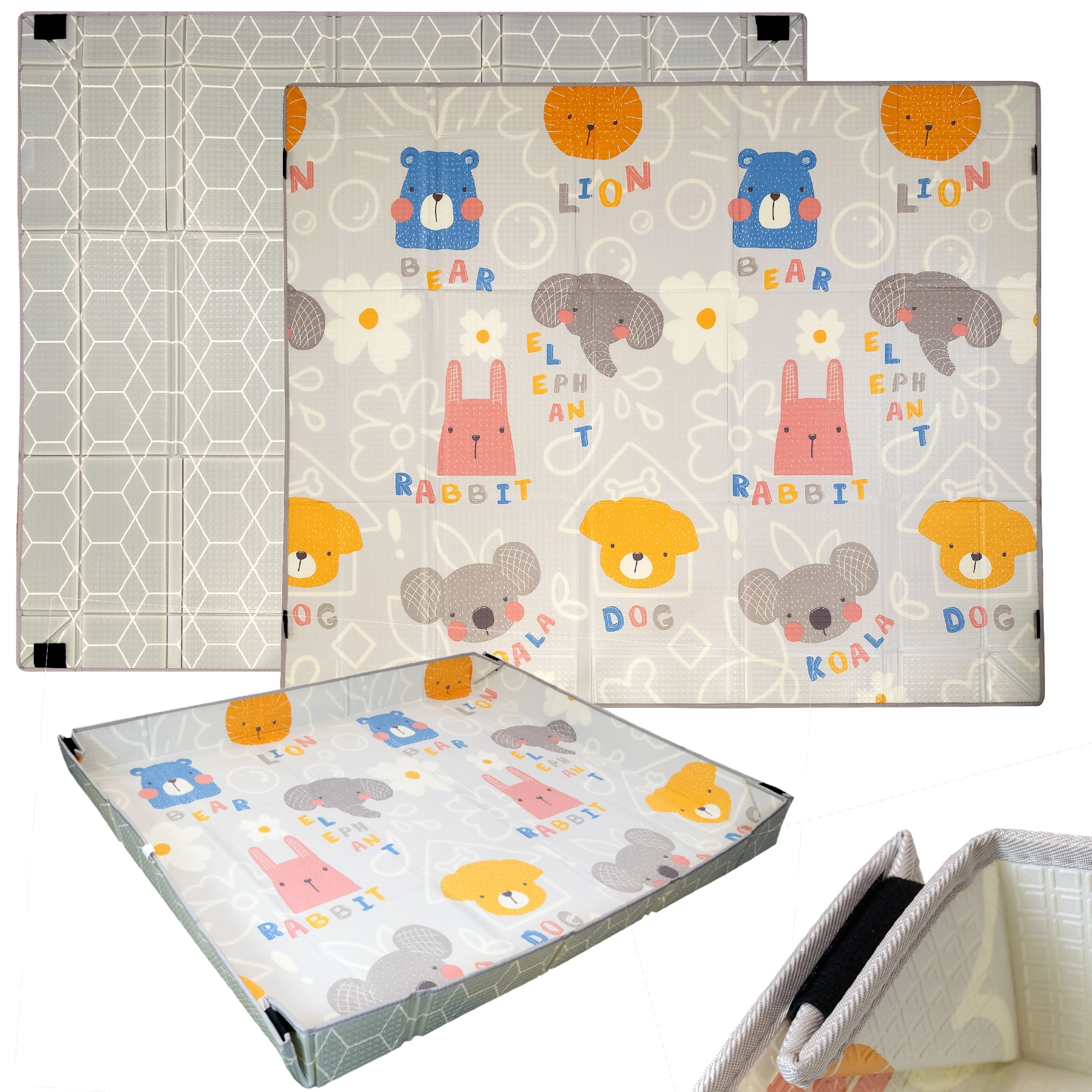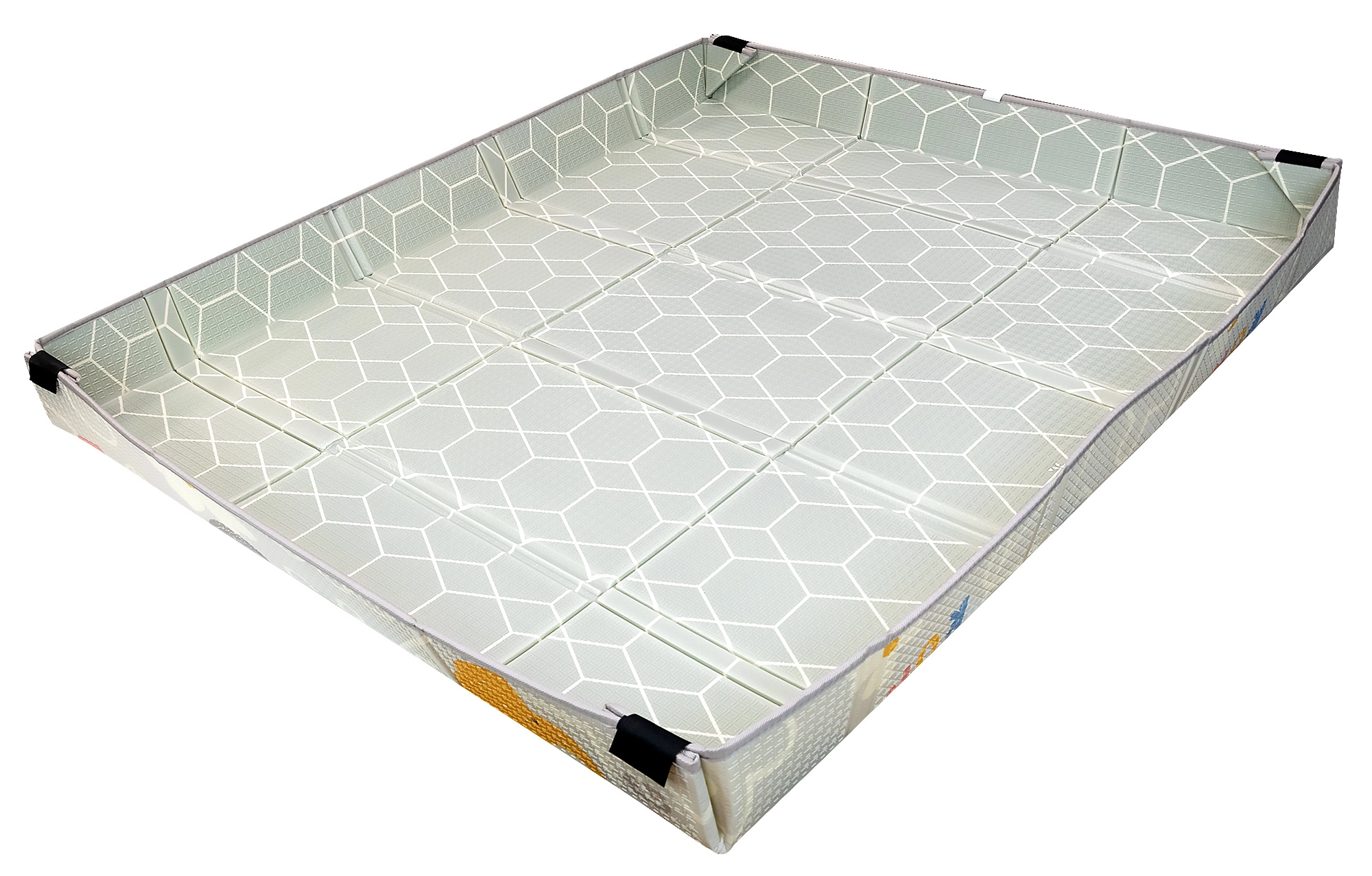 Duża i miękka piankowa mata z XPE zapewni niemowlętom i maluchom bezpieczeństwo i komfort podczas zabawy, raczkowania i stawiania pierwszych kroków. Jest dwustronna, składana, wodoodporna, a dzięki rzepom z łatwością zamienisz ją w kojec lub minibaseniк na piłeczki. Świetnie sprawdzi się w pokoju dziecięcym, salonie i w ogrodzie, a do tego jest bez szkodliwych substancji zgodnie z normami EN71 i REACH.