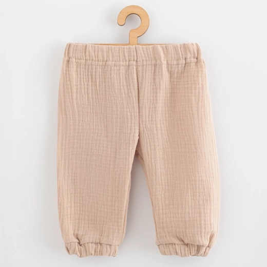 Stylowy i praktyczny 2‑częściowy zestaw niemowlęcy z muślinu od New Baby. Zawiera koszulkę z krótkim rękawem i spodnie z wygodnym pasem. Z wysokiej jakości, oddychającej bawełny, idealny na wiosnę i lato. Miękki muślin, oddychalność, wygodny krój oraz certyfikat OEKO-TEX STANDARD 100 dla bezpieczeństwa delikatnej skóry dziecka.